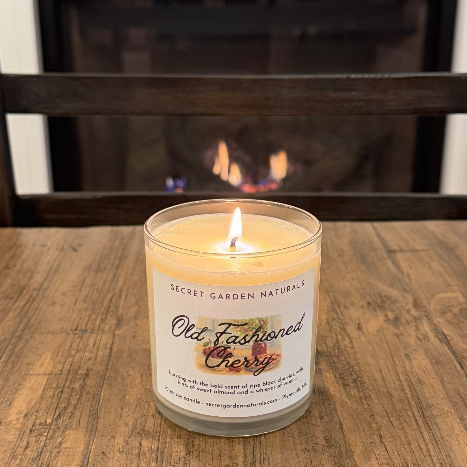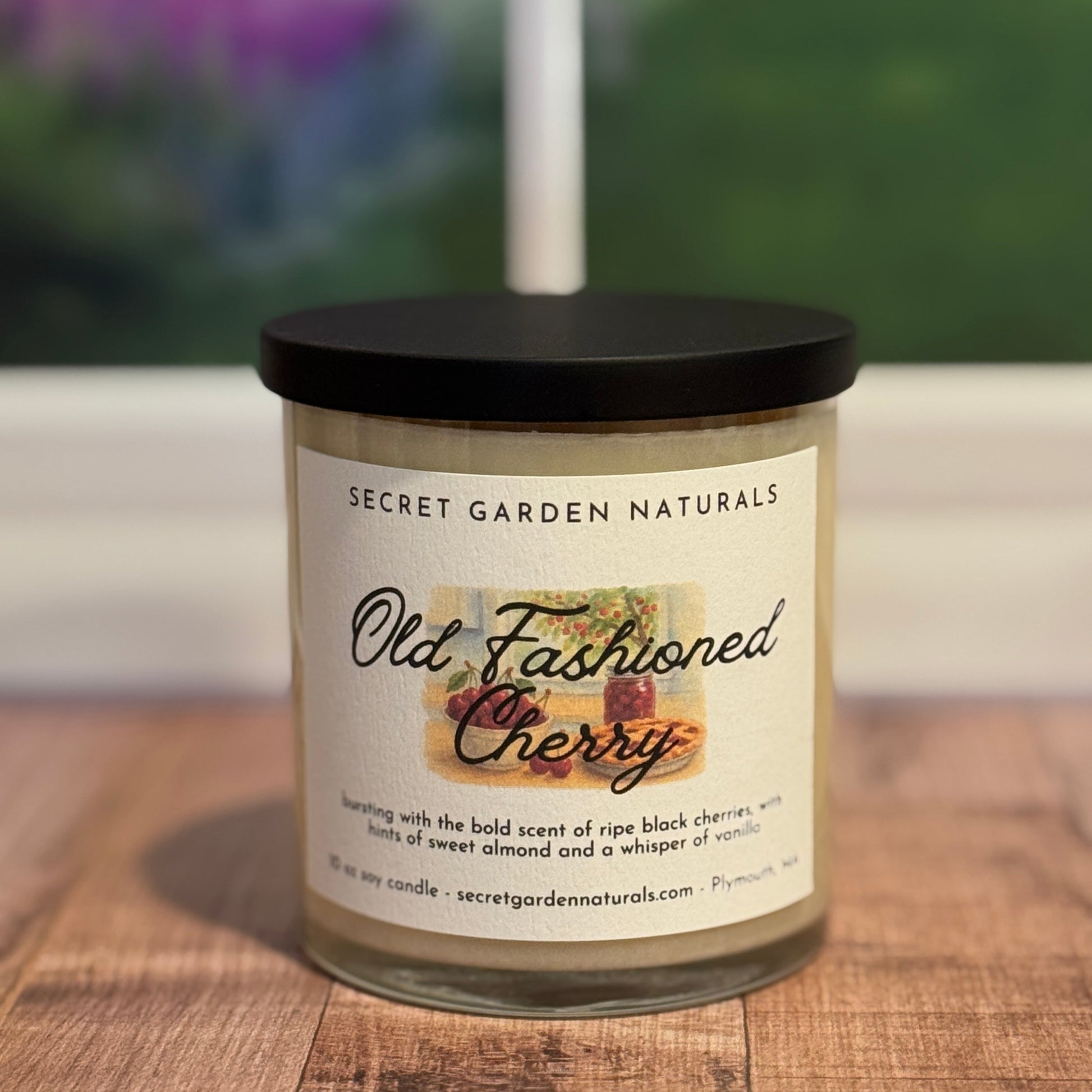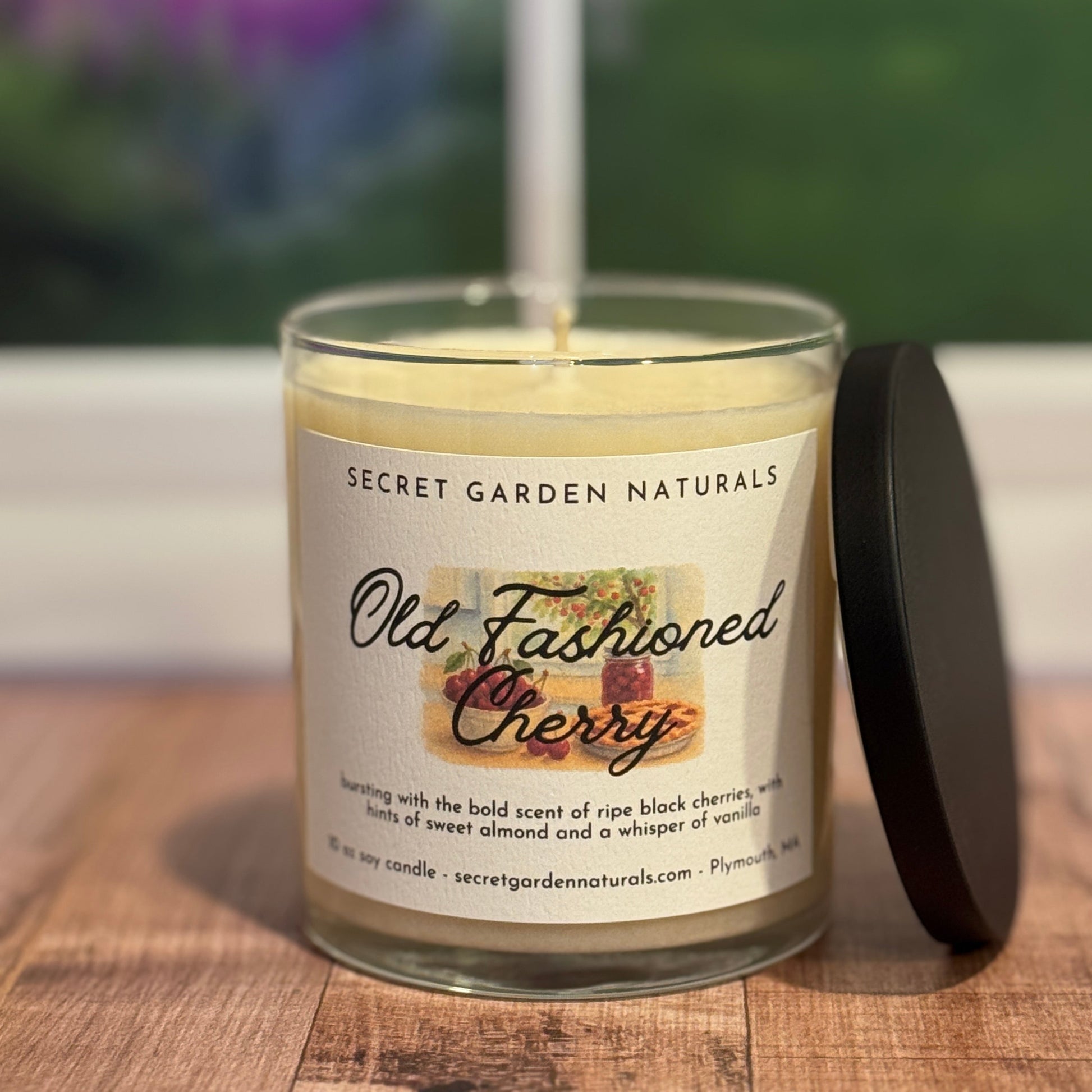 Lush and juicy, this candle bursts with the bold scent of ripe black cherries at their peak. Think of a summer afternoon in the orchard, hands stained red from picking fruit straight off the branch, with hints of sweet almond and a whisper of vanilla rounding out the richness. It's sweet, like the homemade preserves Grandma used to spoon onto vanilla ice cream. Cozy, familiar, and a little indulgent.