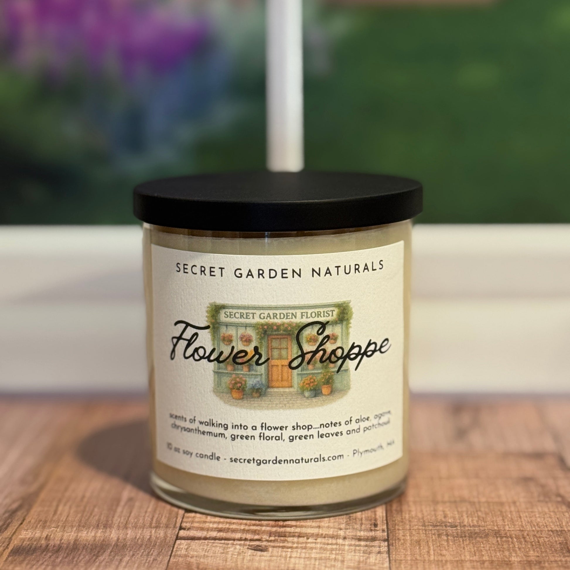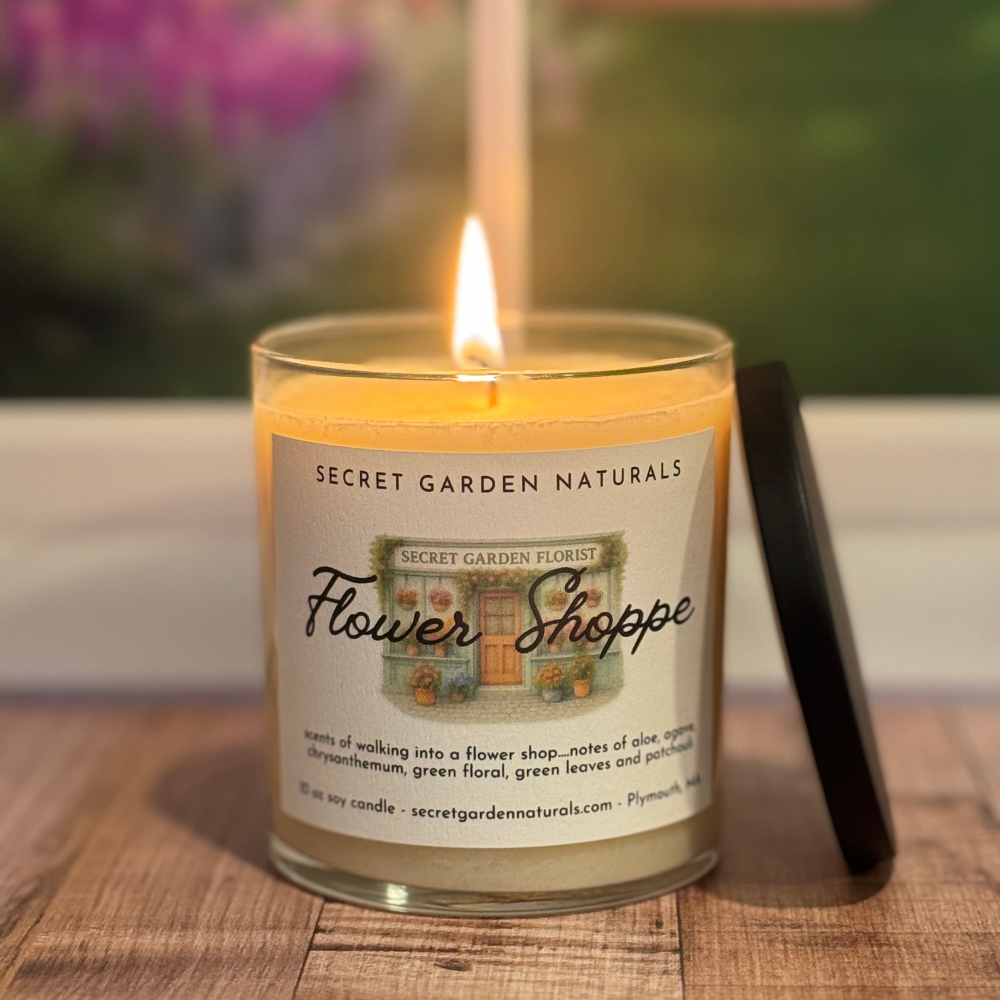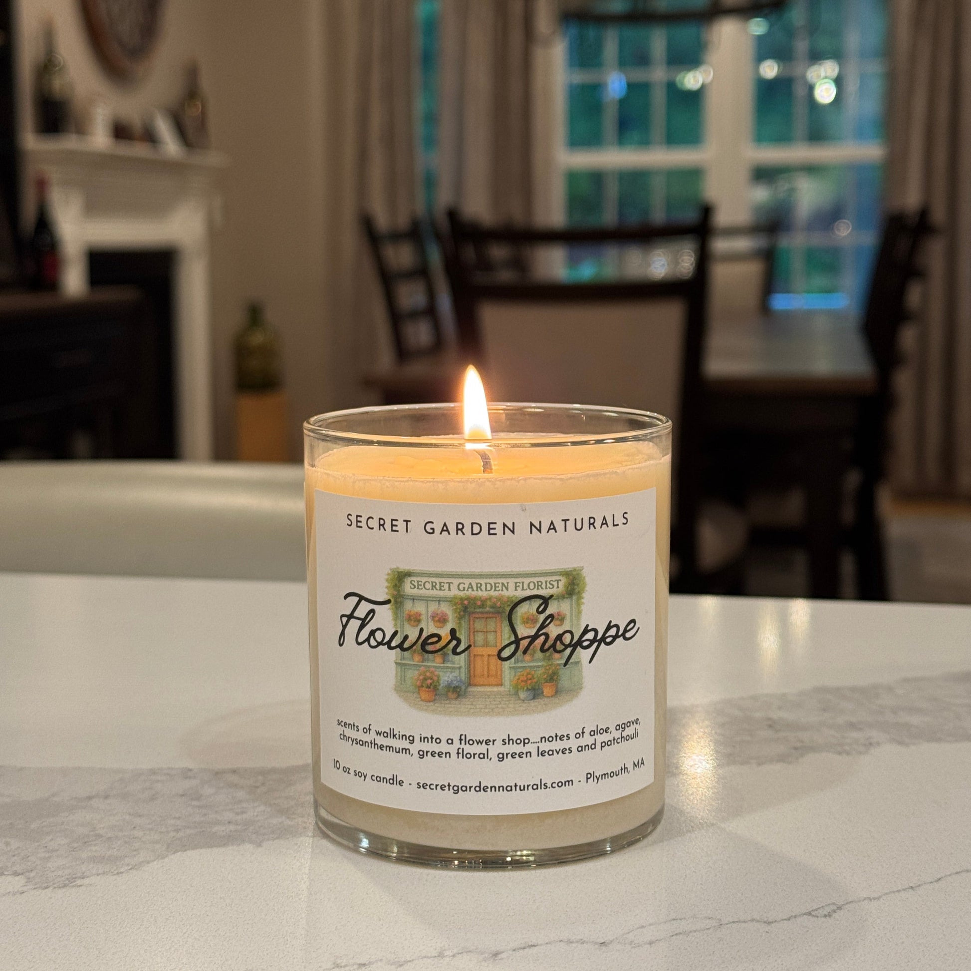Step into the quiet charm of a neighborhood flower shop, where the air is thick with greenery, petals, and promise. This candle blooms with the crisp scent of cut stems and dewy petals - fresh aloe and sweet agave blend with leafy greens and soft chrysanthemum for that just snipped, garden-fresh feeling. Earthy patchouli grounds the fragrance with a gentle warmth. Clean, green, and botanical, it's the scent of blooms wrapped in brown paper and tied with twine.