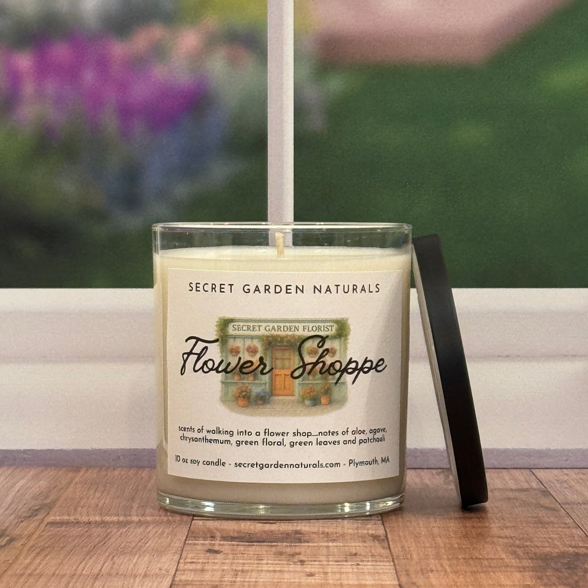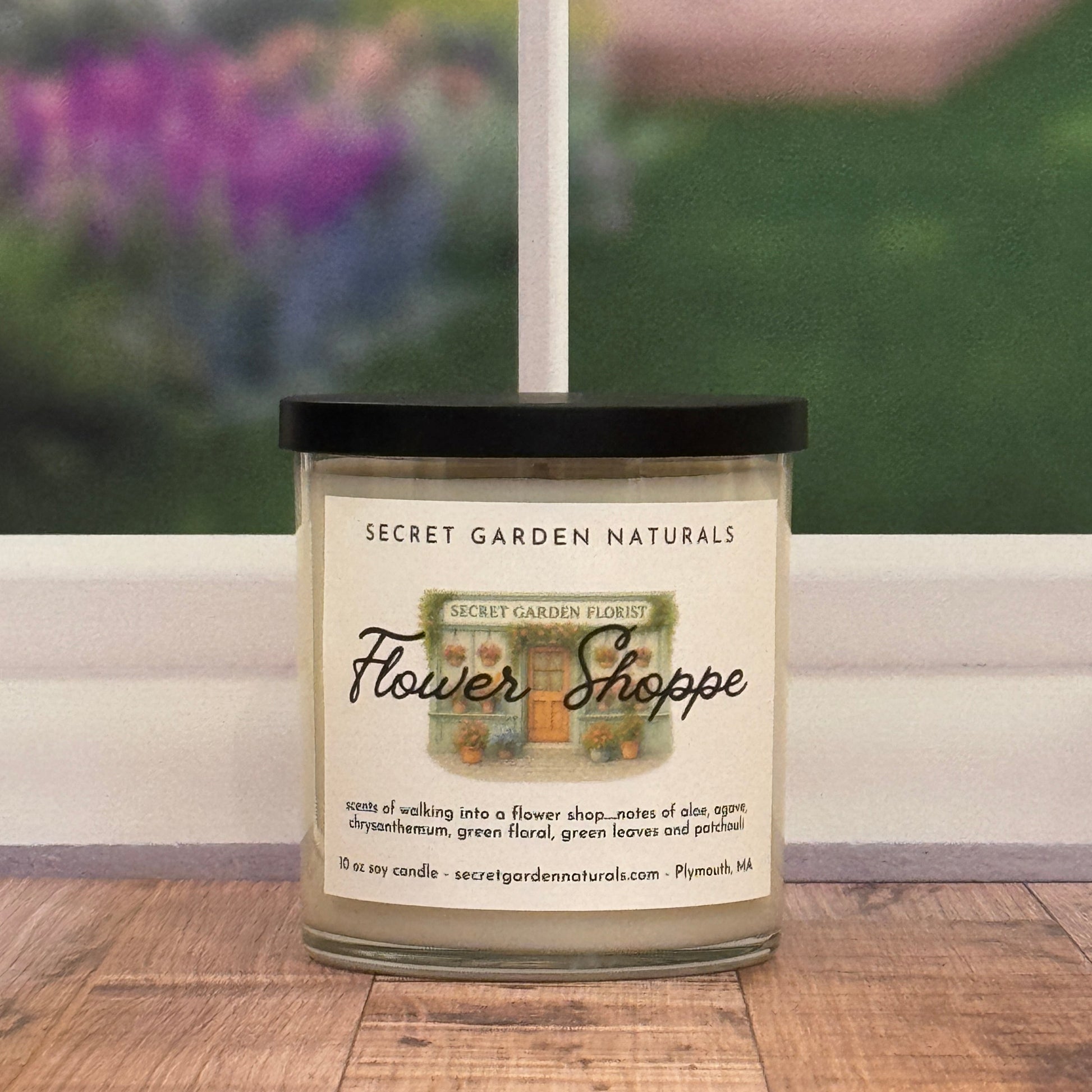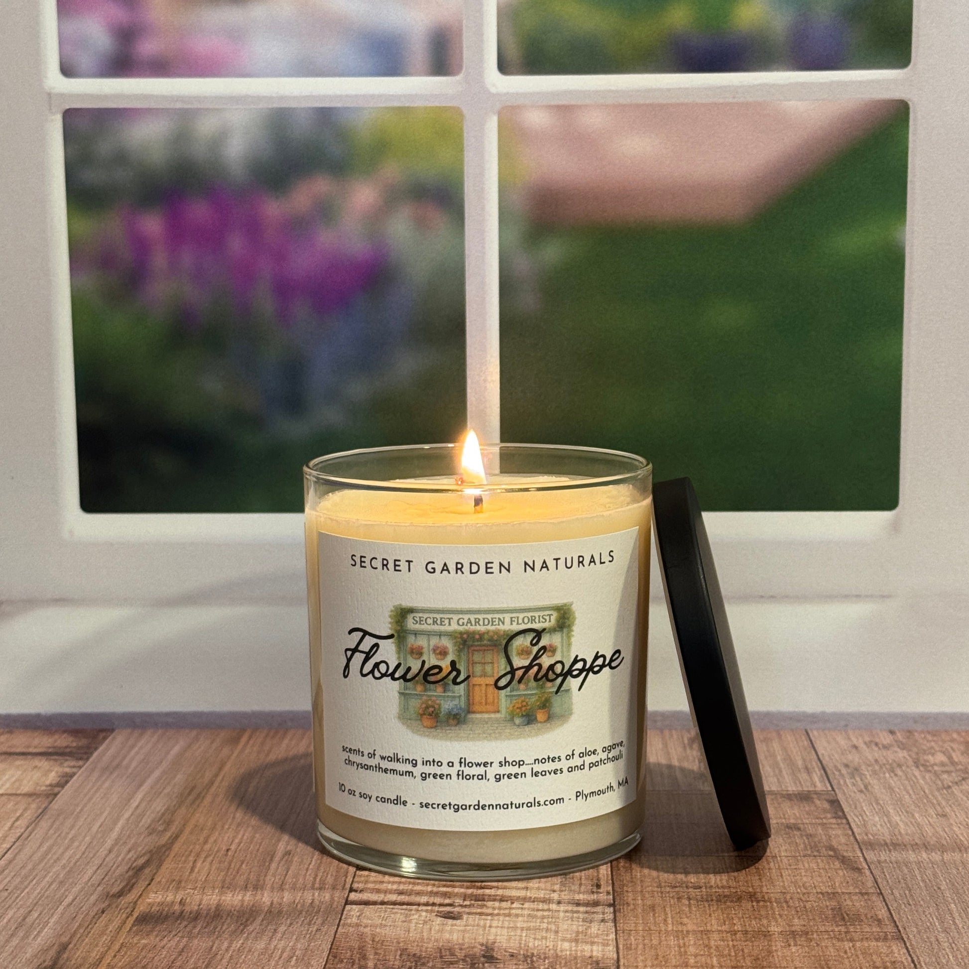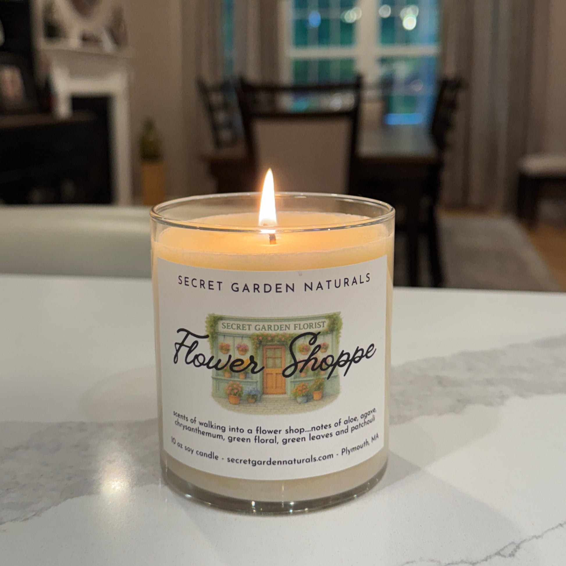 Step into the quiet charm of a neighborhood flower shop, where the air is thick with greenery, petals, and promise. This candle blooms with the crisp scent of cut stems and dewy petals - fresh aloe and sweet agave blend with leafy greens and soft chrysanthemum for that just snipped, garden-fresh feeling. Earthy patchouli grounds the fragrance with a gentle warmth. Clean, green, and botanical, it's the scent of blooms wrapped in brown paper and tied with twine.
