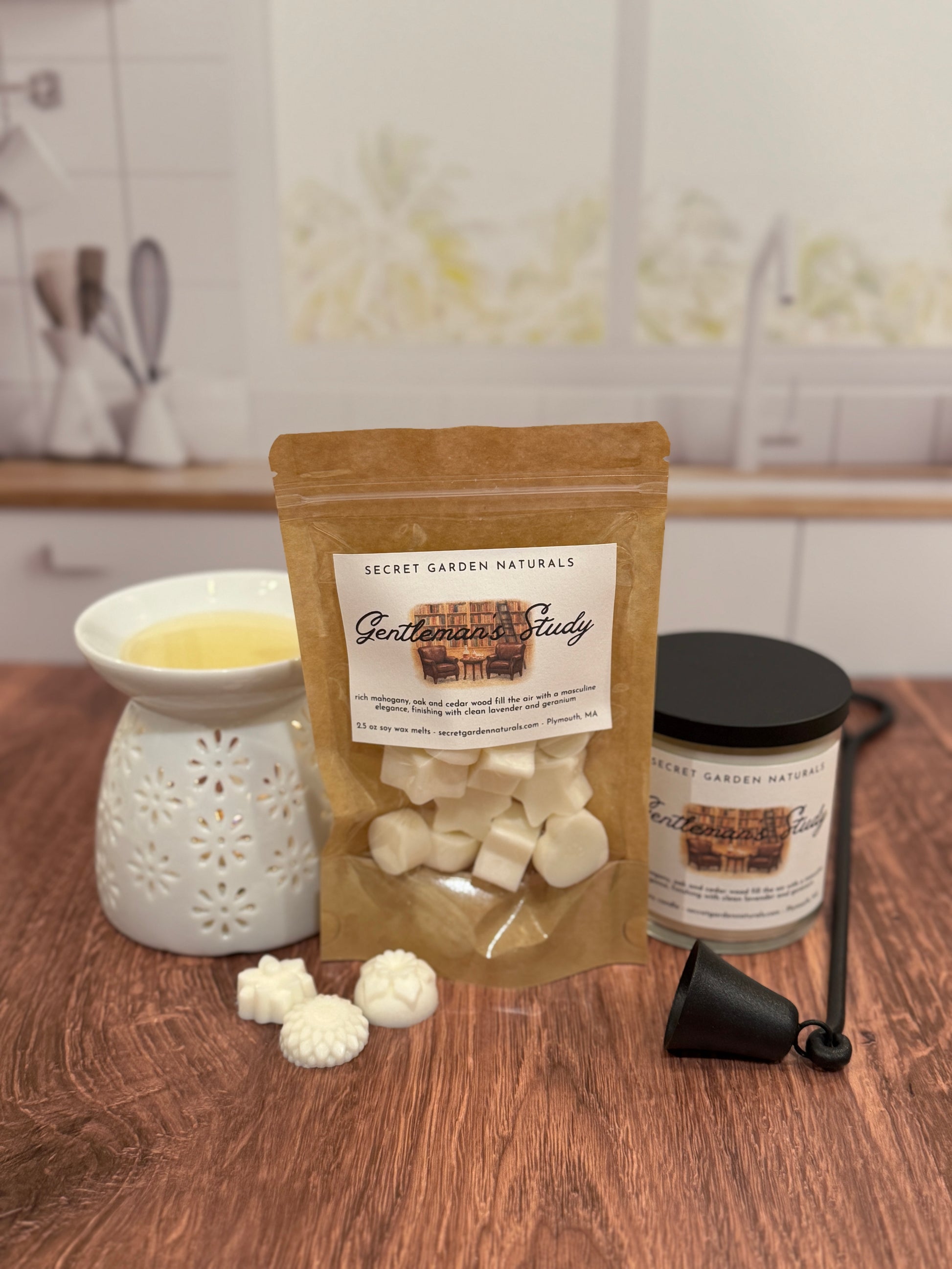 Step into a world of quiet sophistication. Genteman's Study opens with the polished warmth of mahogany, oak and cedarwood.....rich, timeless woods that feel as though they've been steeped in leather-bound books and old-world charm, with a subtle floral lift. Confident and complex, without being overpowering.